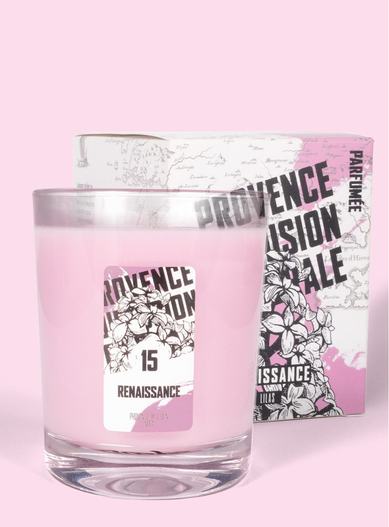 Renaissance est notre interprétation d'un parfum de printemps. Un horizon de lilas en fleurs parsemé de muguet et de jasmin.